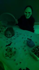 Die jüngeren Schülerinnen und Schüler hatten sichtlich Spaß daran, die schaurigen Stationen zu erkunden, mutig zusammenzurücken und sich gemeinsam zu gruseln. An den Stationen des Rundgangs gab es für alle Besucherinnen und Besucher auch eine kleine Portion Süßigkeiten.