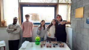 Unsere Schülersprecherinnen und Schülersprecher hatten einen eigenen Stand aufgebaut, an dem sie selbstverzierte Muffins, Süßigkeiten und kleine Leckereien verkauften. Der Andrang war groß – und die Aktion ein voller Erfolg.