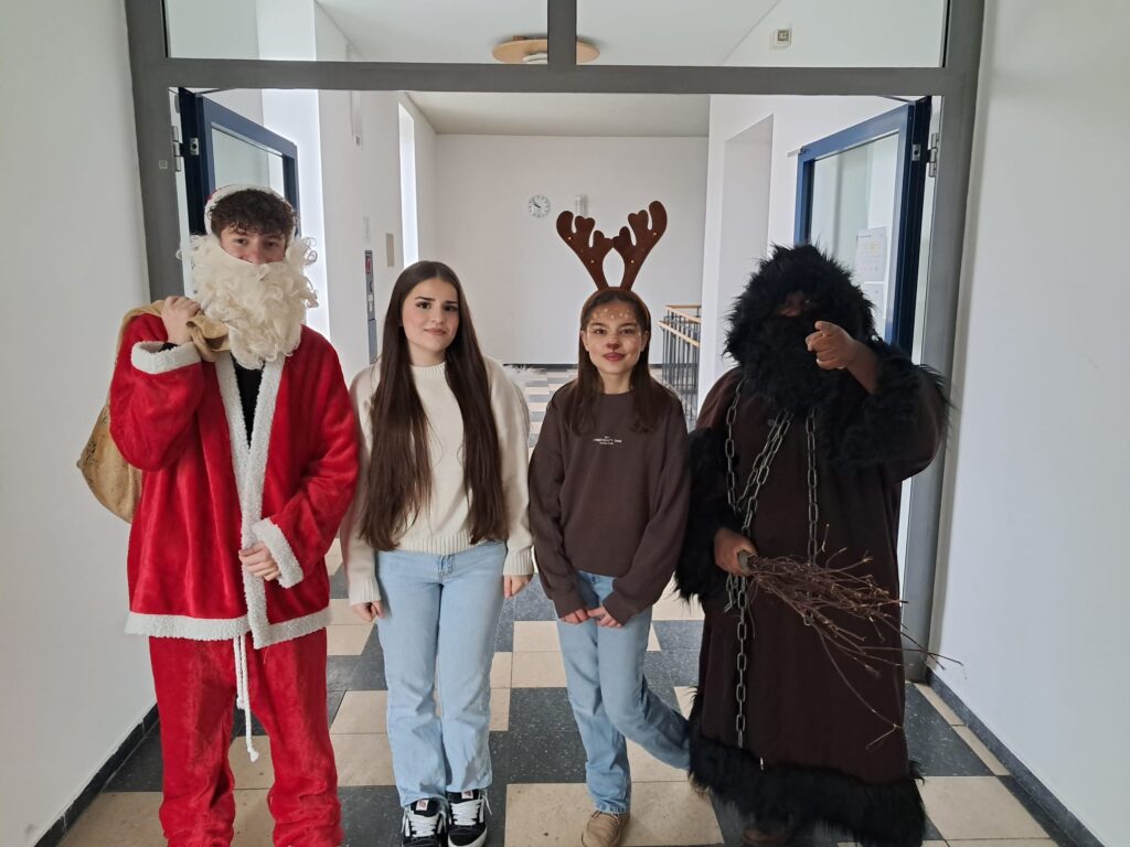 Am vergangenen Freitag, den 12.12.2025, durften wir besonderen Besuch begrüßen: Nikolaus und Krampus machten bei uns Halt. Die Kinder der 5. Und 6. Klassen lauschten aufmerksam den Geschichten des Nikolaus und manche erhielten auch Ermahnungen – sogar einige Lehrkräfte bekamen einen kleinen „Hinweis“. Die meisten Schülerinnen und Schüler konnten sich jedoch über ein Lob und eine kleine Belohnung freuen.